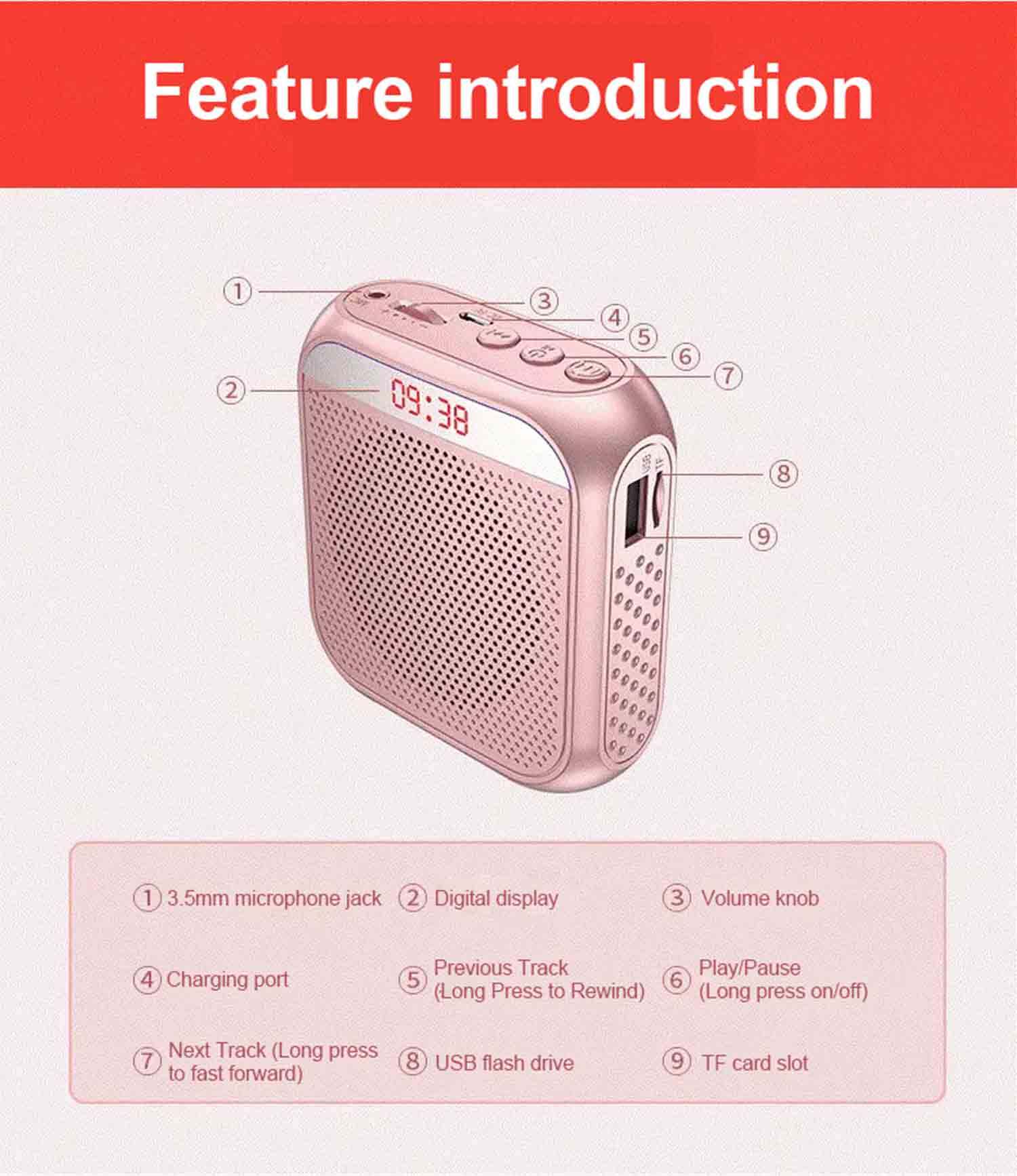 Loudspeaker With Wired Microphone for Teachers & Tour Guides – Waist-Worn Speaker with Mic, Recording & Playback